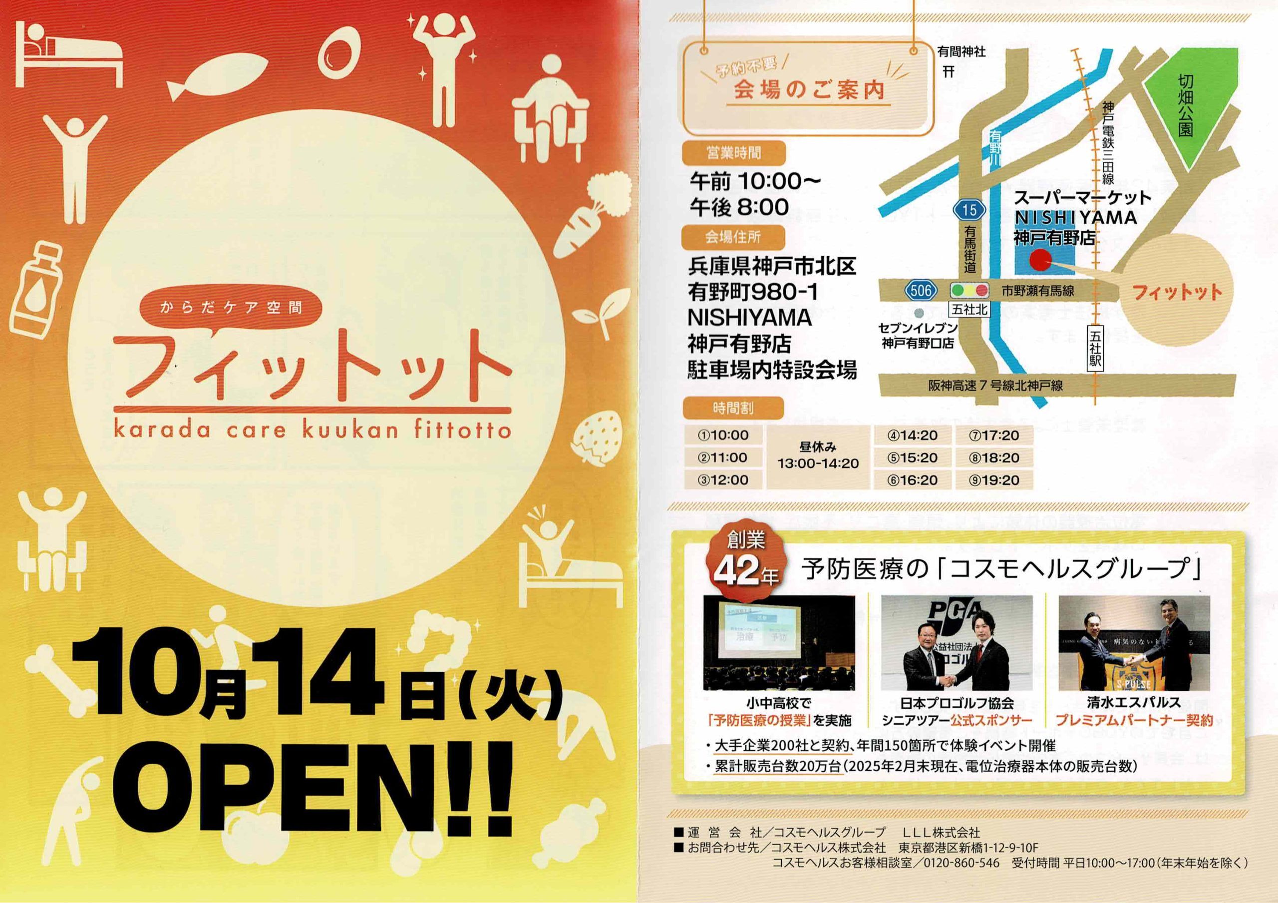 ひと月ほど前に、ご近所の奥さんから、声をかけられ、すごく良いから無料体験行ってみて〜っと言われた何かよく分からない電気治療。その時は体調も良いし特に気にもとめなかった。すると、妻がまた別の御向かいの奥さんや、お隣の奥さんから声をかけられ、同じ無料体験を勧められた。なんか、怪しいなあ。きっと個人情報取られるとか、押し売りが強いんじゃないか?なんて話してたけど、仲の良いご近所さんがそんなこと勧めへんで〜と思い、畑仕事し過ぎた次の日に行ってみた。ただ椅子に座ってるだけ。その間、健康の話とかしてくれて、明るい元気なスタッフさんも感じ良かったので、次の日妻も誘ってまた行ってみた。そのへんの低周波治療器とは違い、頭痛、肩こり、不眠症、慢性便秘の緩解はちゃんとうたっていい治療器だった。個人的見解ですが、私は夜のトイレの回数が減り、妻は低すぎる体温が少し上がってきました。もちろんたまたまやん、と言われればそうかもしれません。ただ住所も電話番号も聞かれないし、出席カード作るのに名前書くんですが偽名でもバレない。大阪の治療院では一回2200円かかるのが、何度行っても無料っていうのと3月5日までということで紹介しとこうかなあと思ってあげました。2/27,2/28,3/2は特に大事で、この日までに目標の人数が集まったら、広告効果があると認められて、開催期間が延長できるそうです。芦屋からは一山越えないといけないので少し遠いですが、昨日も芦屋から来てた人がいてたので、良かったら行ってあげて下さい。私は今日で7回目行きました。やっと効果感じたので紹介しようと思いました。体温上がった人の体験談が多かったので免疫アップにいいかもしれませんね。